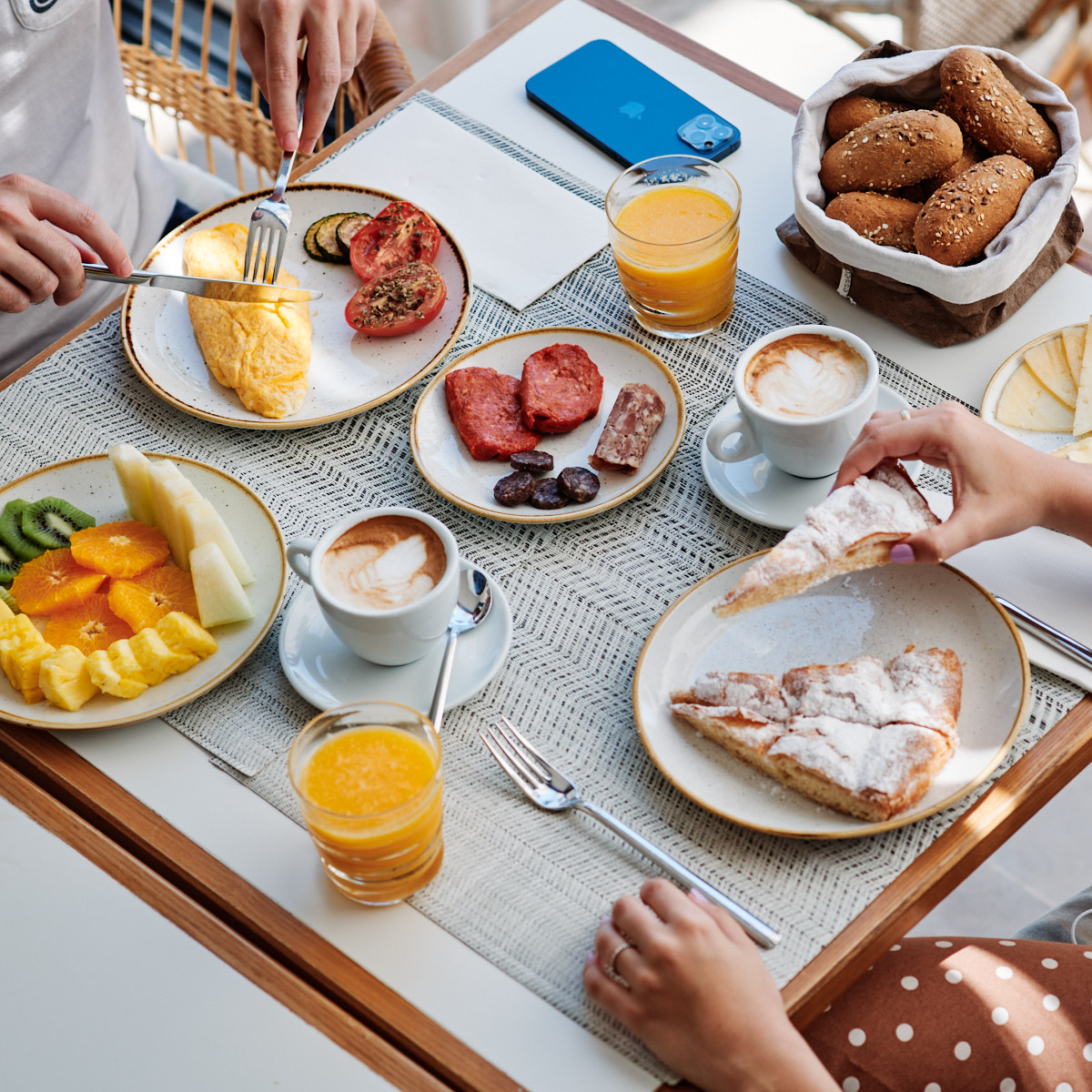 Was gibt es schöneres als den Duft eines frisch gebrühten Kaffees am Morgen? Genießen Sie ihn, einen guten Orangensaft oder Toasts mit Marmelade in Ihrem Bett oder in unserem Salicornia Restaurant.