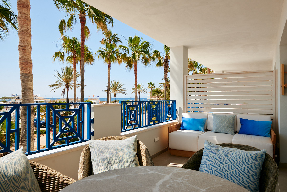 Spacious room with two rooms: a bedroom, a living room and, in addition, a magnificent terrace with sea views and a pleasant sofa to listen to the waves of the sea.