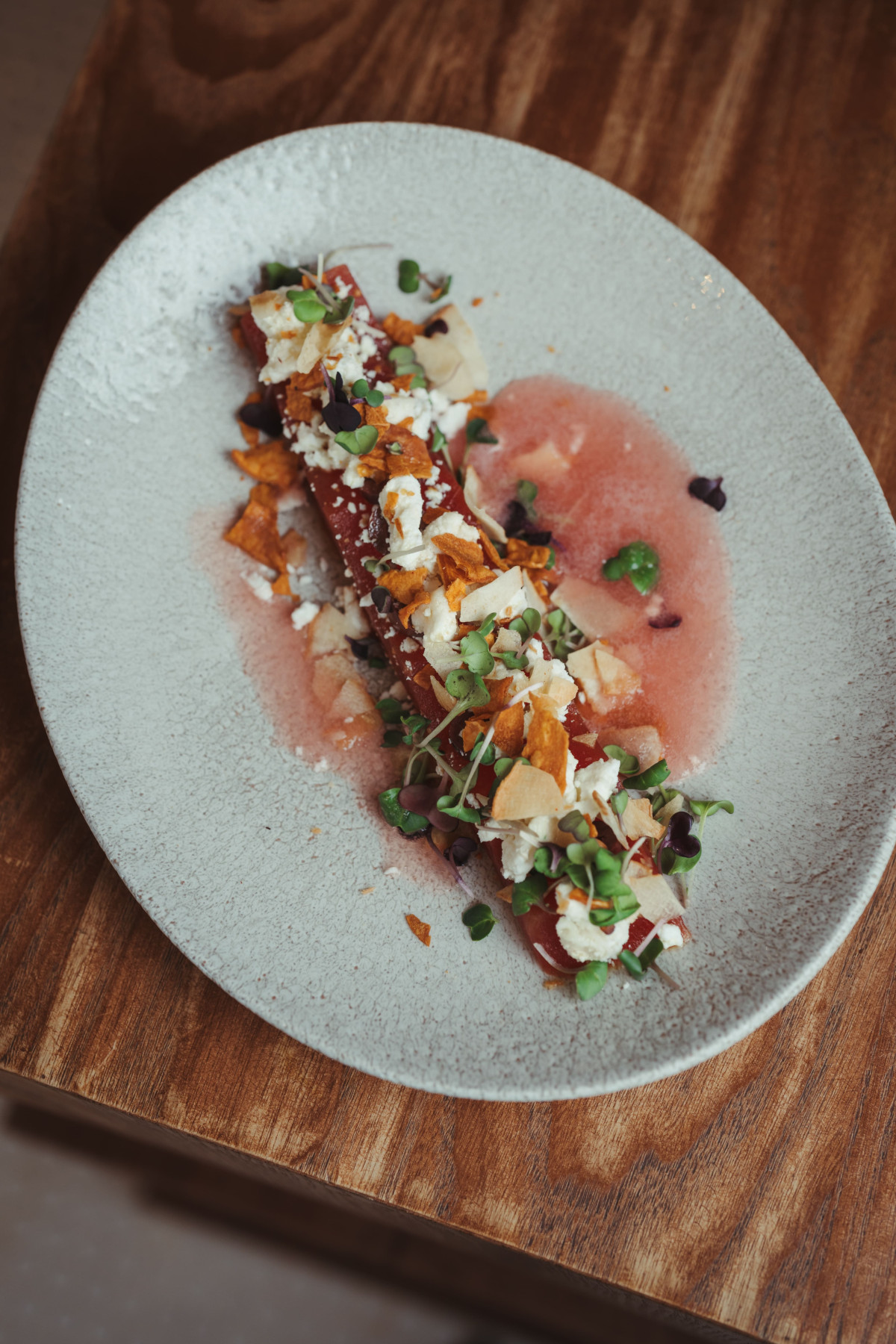 Our menu celebrates local and seasonal produce through creative reinterpretations that offer fresh and authentic flavors. We offer a selection of rice dishes, fideuás, and fresh fish, along with vegetarian and vegan options such as Mallorcan tumbet with caramelized tofu or zucchini cannelloni with ratatouille and mango-coconut sauce.